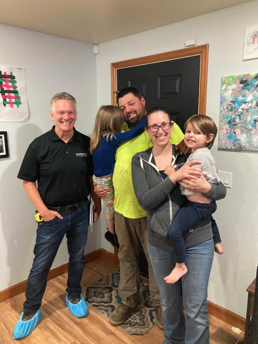The Boersmas are a sweet, hardworking family with two young children. Like many, their home was hit hard by last winter’s flood, which wiped out the insulation and duct work under the house. The couple took the a big chance and purchased a cement company just before the flood hit, so as new small business owners they were then unable to get a loan to replace the heating system in their home. The Barron team extended a hand with the gift of a new Carrier furnace system, giving them the little boost they needed to enjoy a warm home this season.